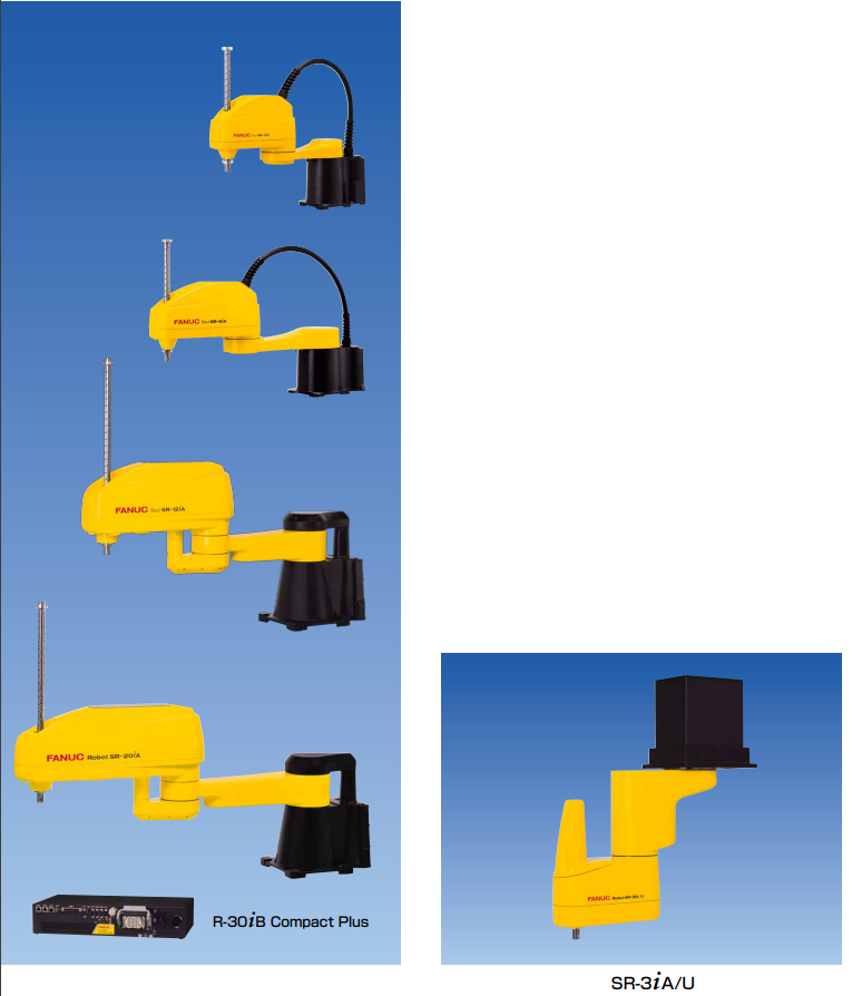 FANUC Robot SR-3iA, 6iA, 12iA, 20iA 是可搬運負載3~20kg , 兼具有緊湊性和高動作性能的SCARA機器人。