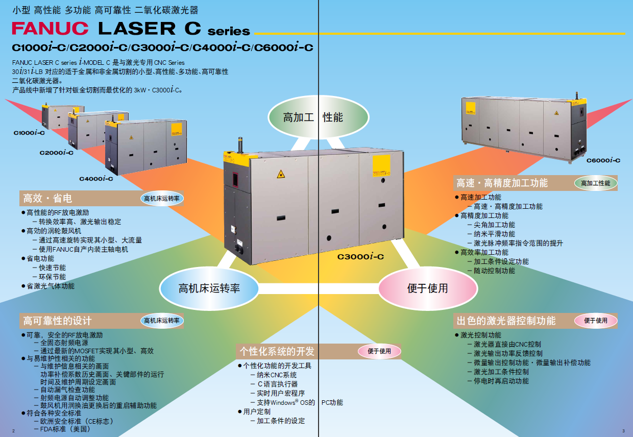 FANUC LASER C系列具有簡潔/高效能/高經濟的二氧化碳雷射發振型式,發展用於切金屬/非金屬材料。